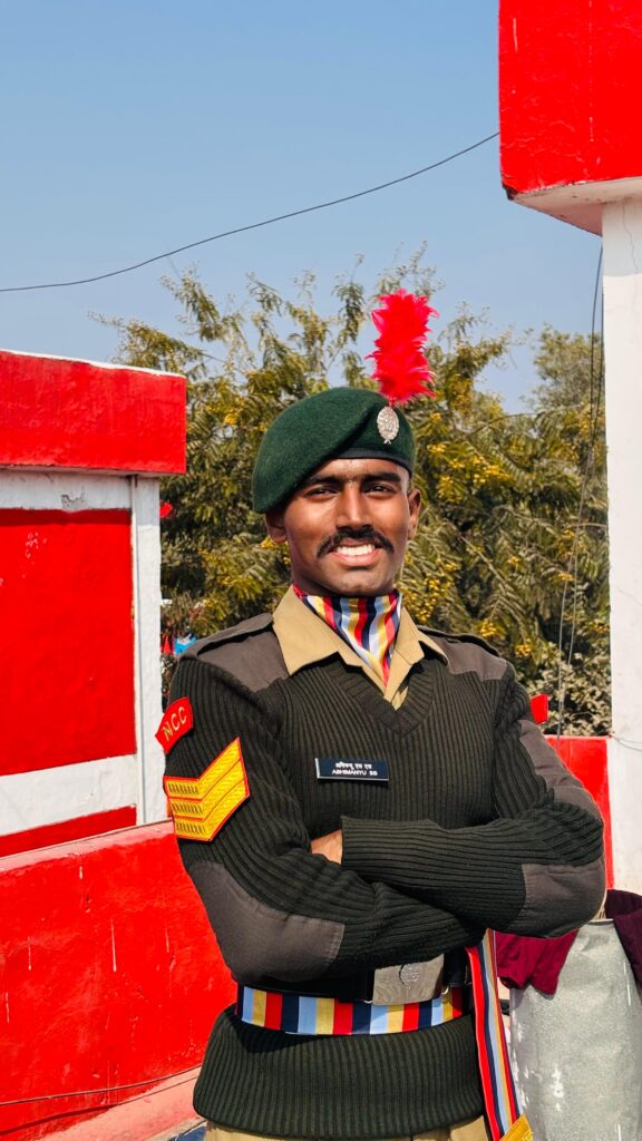 SGT Abhimanyu S. S., who has been selected to participate in the Republic Day Parade to be held in Delhi on January 26, 2026, representing the Kerala–Lakshadweep NCC Directorate, is a fourth-semester student of the Department of Psychology at Don Bosco College, Kottiyam, and a second-year cadet of the Kollam Seven Kerala Battalion